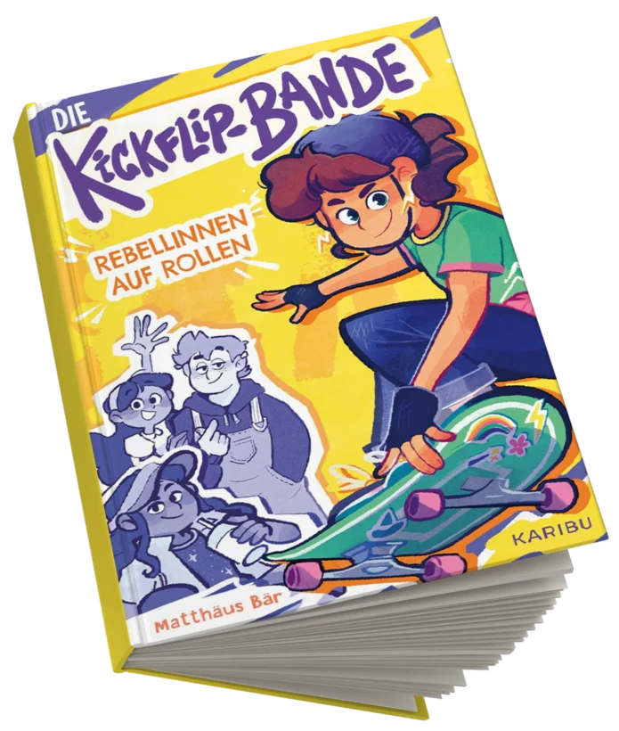 Die Kickflip-Bande, das sind Harry-Potter-Nerd Rosa, die selbstbewusste Müjde, die rebellische Toni und die brave Natalia. So unterschiedlich die vier Mädchen auch sind, es gibt eine Sache, die sie verbindet: Ihre Liebe zum Skateboard! Und nachdem sie sich gefunden haben, kann sie nichts mehr aufhalten. Schon gar nicht der fiese Esso und seine Clique. Doch dann verletzt sich Natalia beim Skaten und ihre überfürsorgliche Mutter will gleich den ganzen Skatepark schließen lassen. Aber der ist doch das Zuhause der Kickflip-Bande …
